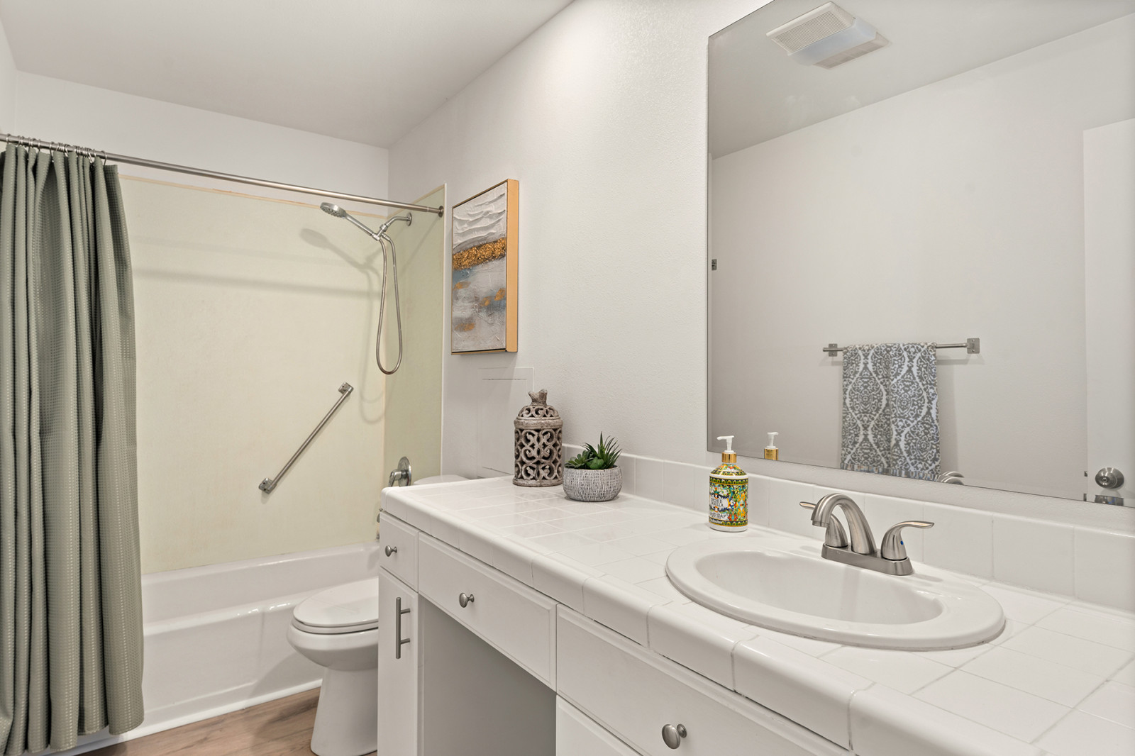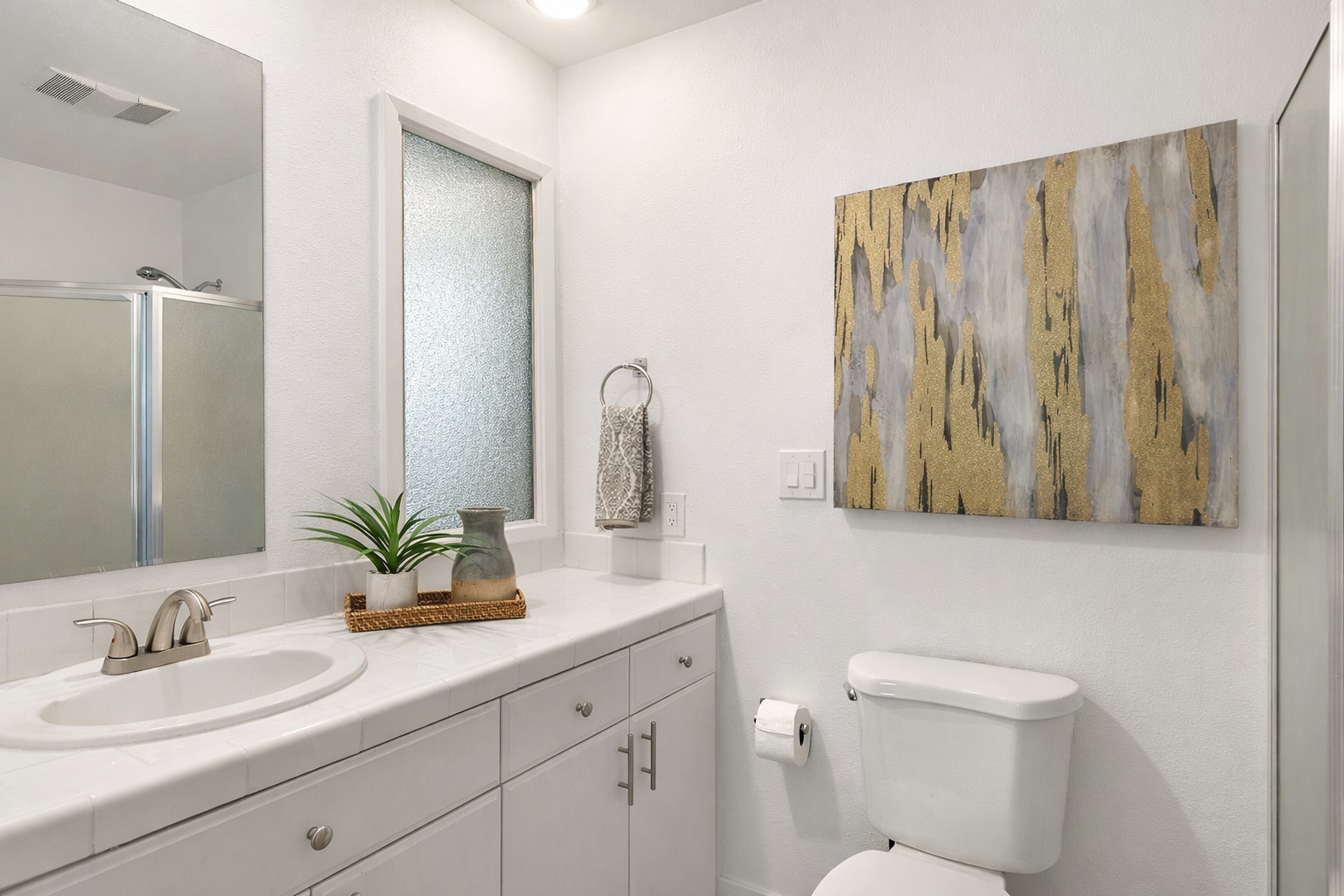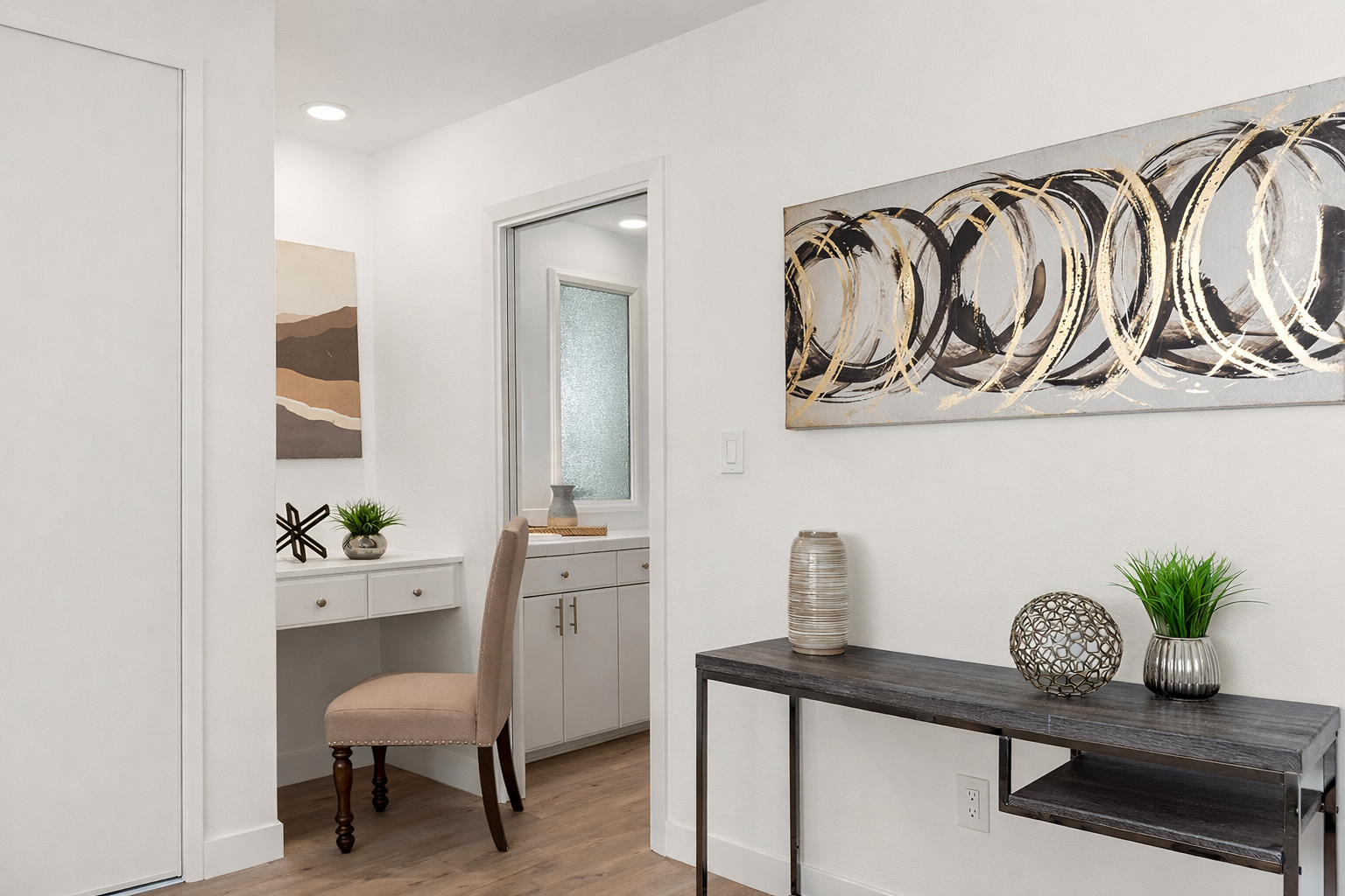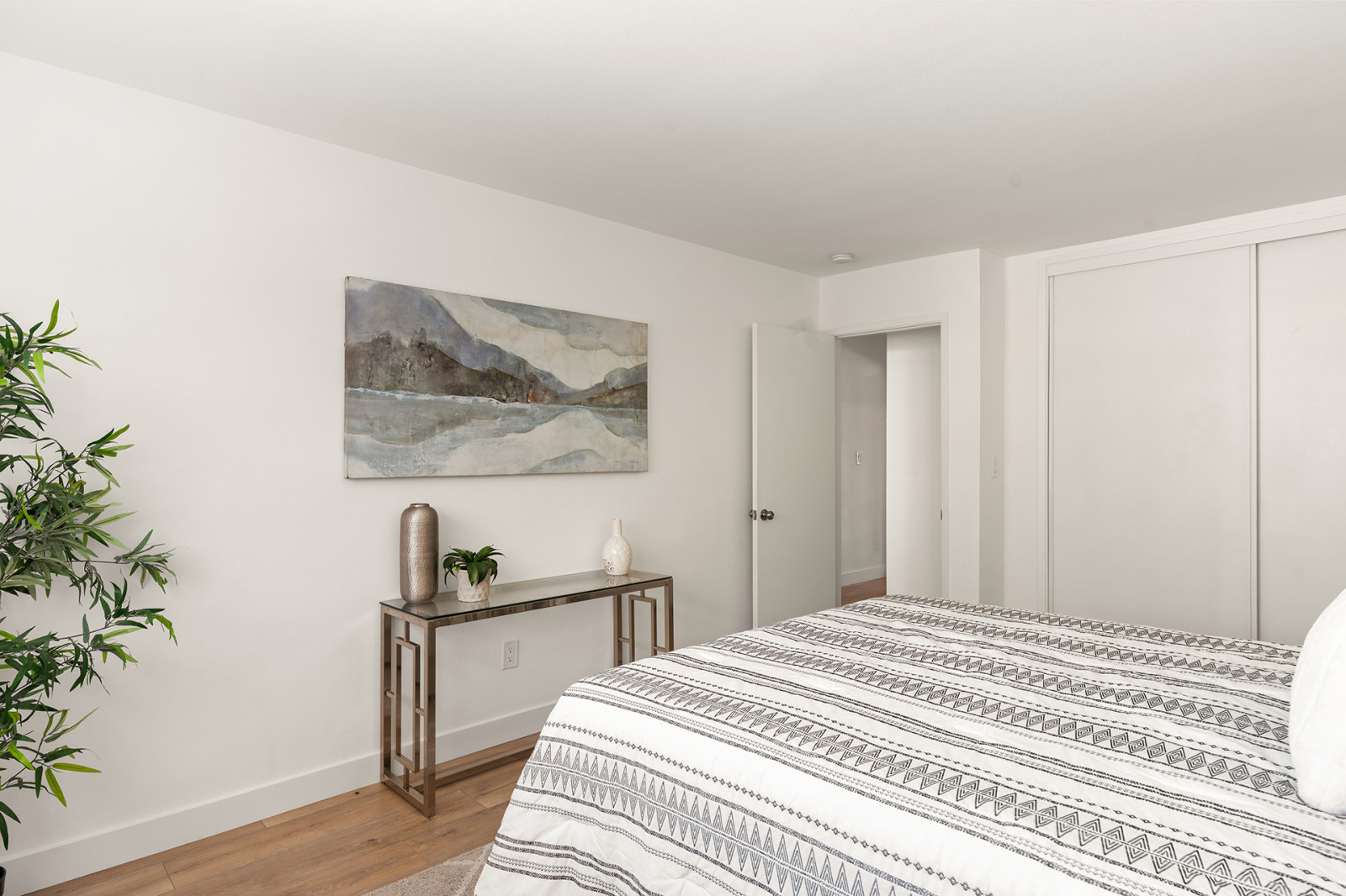 The home has been recently refreshed with new flooring throughout, updated lighting, new window treatments, and fresh interior paint. The thoughtfully designed layout provides a comfortable separation between living and bedroom areas while maintaining an open, airy feel. Both bedrooms are generously sized with ample closet space. The kitchen offers abundant cabinetry and storage, providing excellent functionality as-is along with the opportunity to personalize over time.