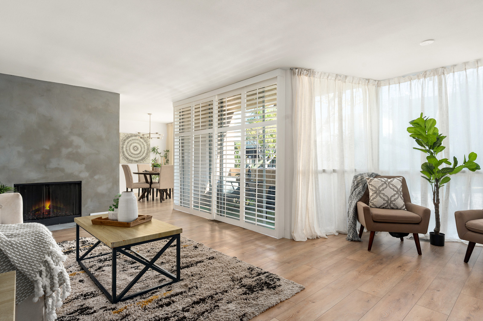 Located in a well-maintained mid-century condominium building in the desirable Ladera Heights neighborhood, this first-floor two-bedroom, two-bath residence offers bright, open living spaces and oversized windows that fill the home with natural light. The spacious living room features a gas fireplace and opens to a private balcony. Just off the living area is a flex space ideal for a home office, bar, or potential in-unit laundry with HOA approval.